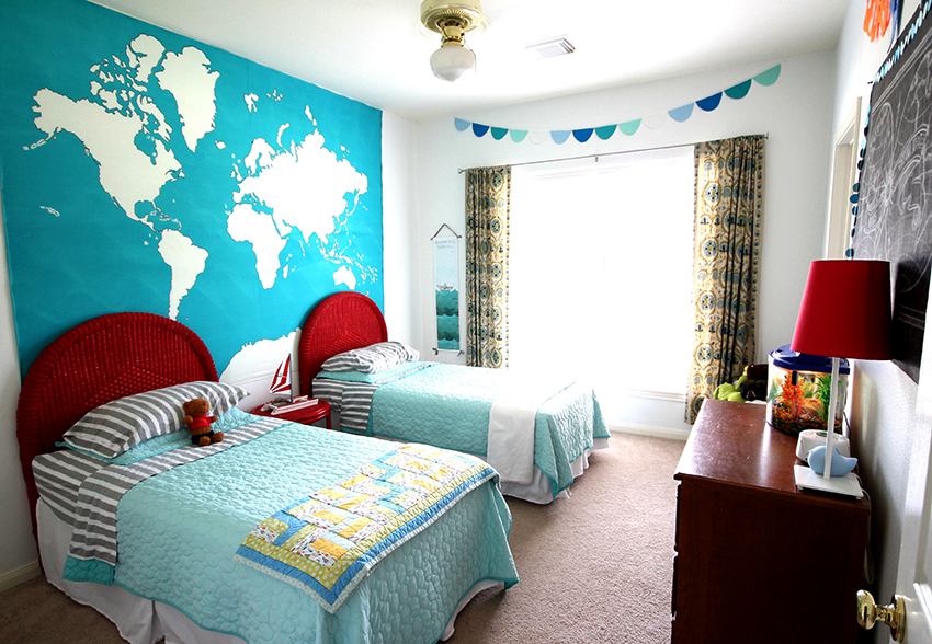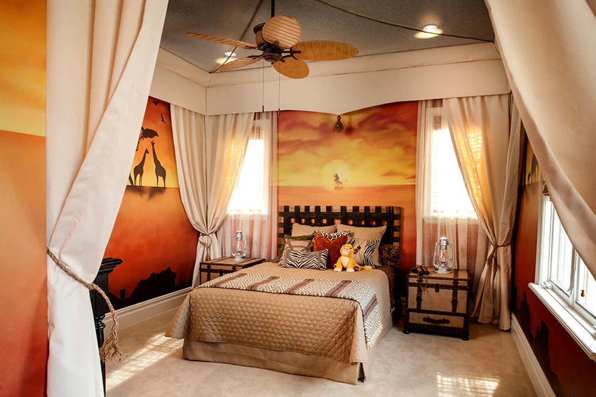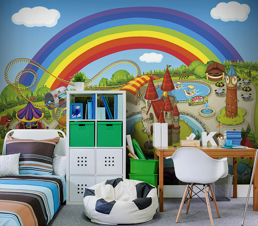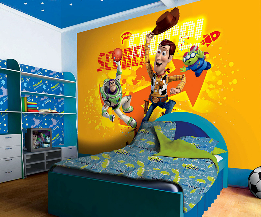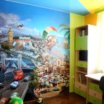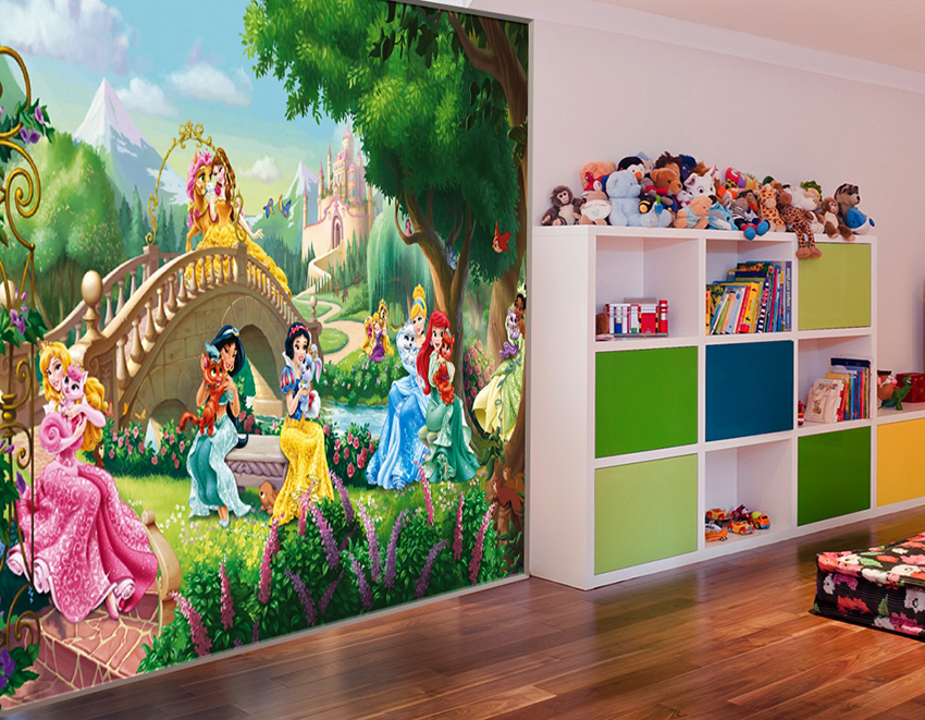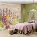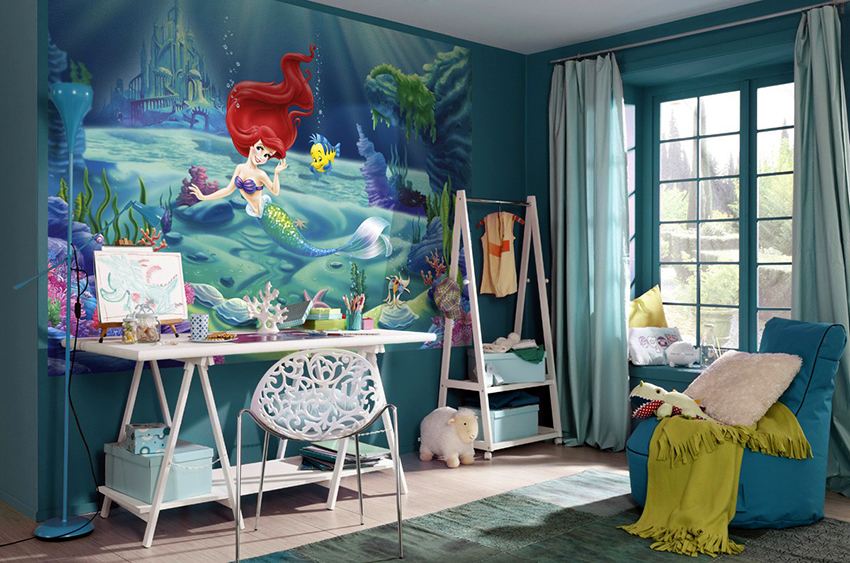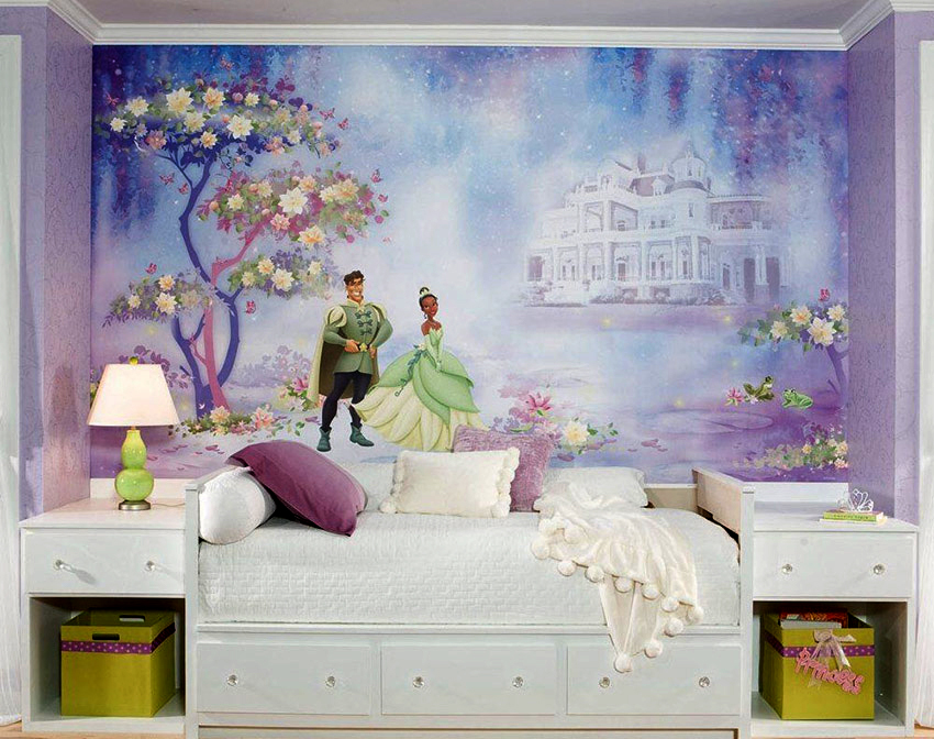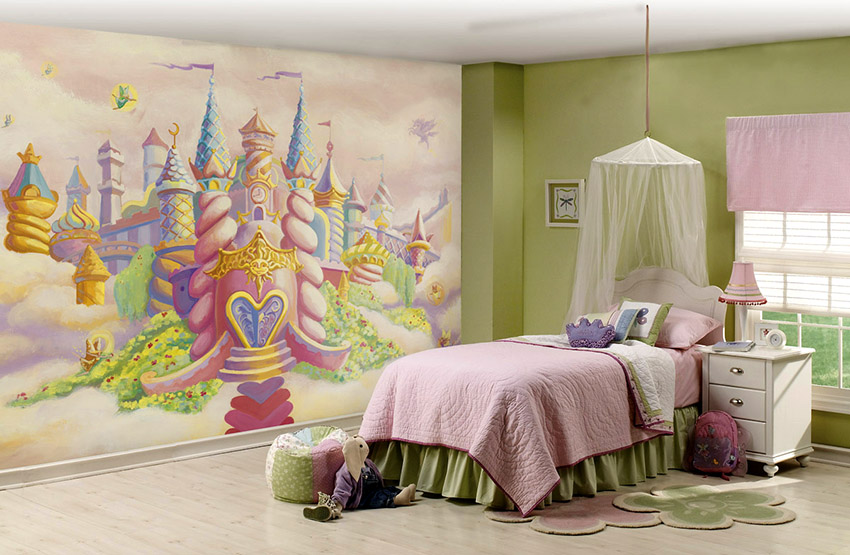 - 6-12 years old. At this age, the child can already fully participate in creating the interior of the room. Usually they choose their favorite cartoon or comic book characters. Girls tend to prefer images of castles and princesses, while boys tend to prefer cars, trains, ships or dinosaurs. Landscapes are also appropriate in this case.