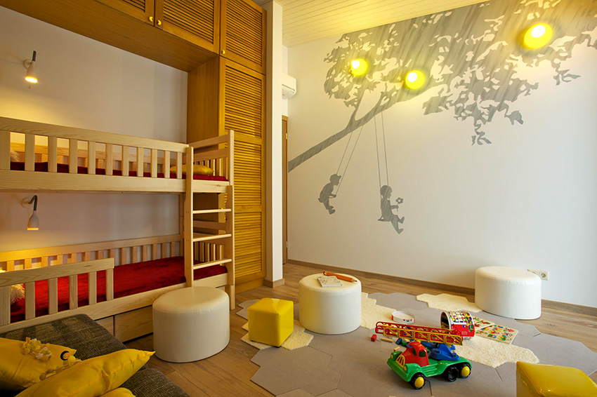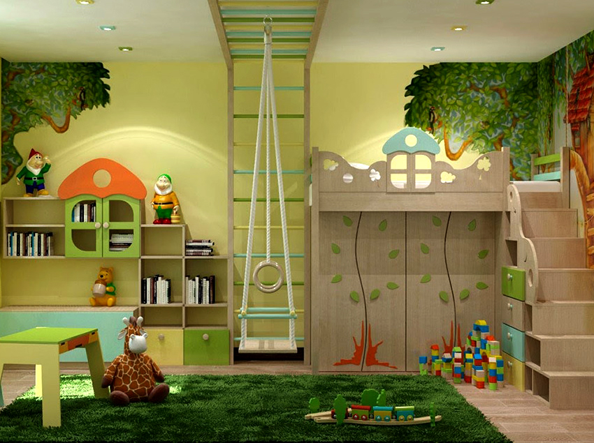 - In the play area. Here it is appropriate to choose both calm and variegated canvases that will suit the mood of the entertainment area.