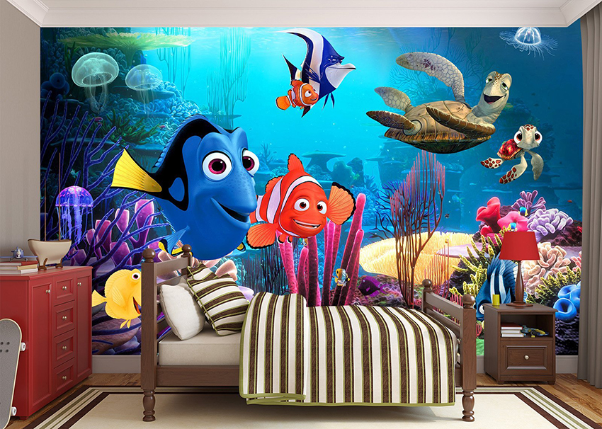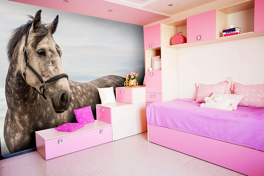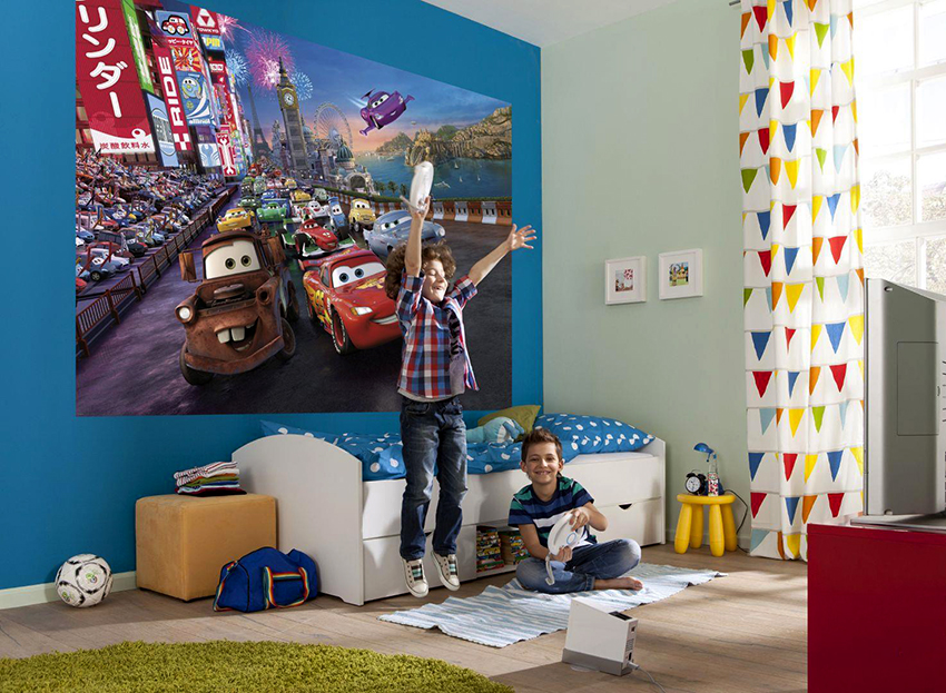When buying photomurals for a children's bedroom, you should choose safe options. Wallpaper with images printed with latex ink should be used here, eco-solvent and water-based paints are inappropriate in this case. It is recommended to give preference to wallpaper on a paper or non-woven backing without the use of vinyl.