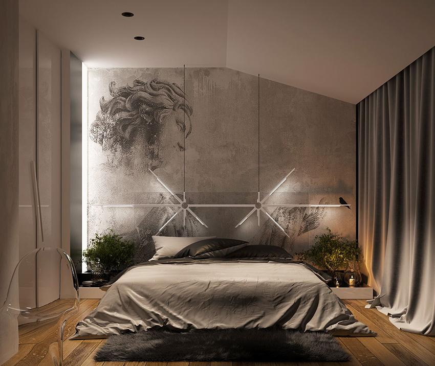 The design of the bedroom should have a relaxing effect on a person. It is in this room that there should be an opportunity to pleasantly relax and calmly prepare for a new day. Many people want to convey their mood and show creative imagination when decorating a bedroom. Wall murals in the bedroom are considered one of the effective techniques that create a unique design. Modern technologies give the canvases such a realistic look that the room comes to life before our eyes.