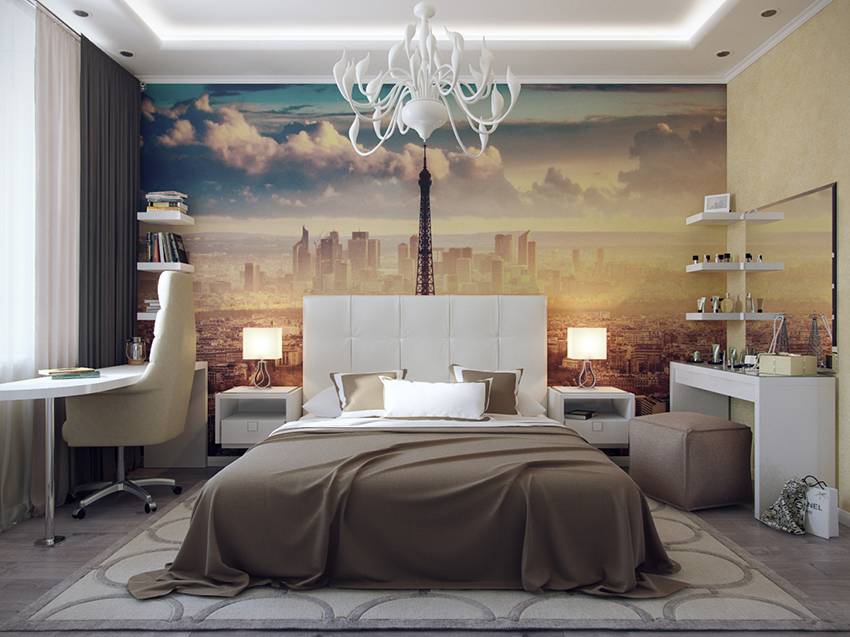 A bedroom is a separate and private area, the atmosphere in which should first of all give comfort and warmth. If you choose the right photo wallpaper for the bedroom, you can neatly hide the flaws in the room and even turn them into advantages. Well-chosen wallpaper will help to correct even the most unfortunate shape of the bedroom, and a small room will be filled with volume and freshness.