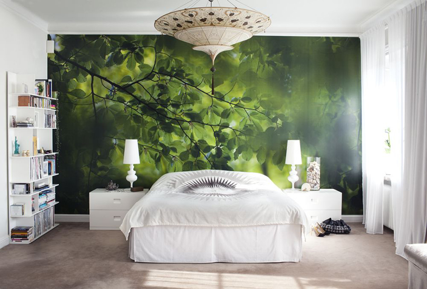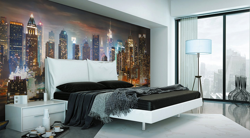 Photo wallpaper in the bedroom: the choice of products depending on the printing method and the selection of the format