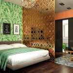 - When combining wallpaper with a large pattern and monochromatic options, you can perform competent zoning in the room and separate zones of different functionality.