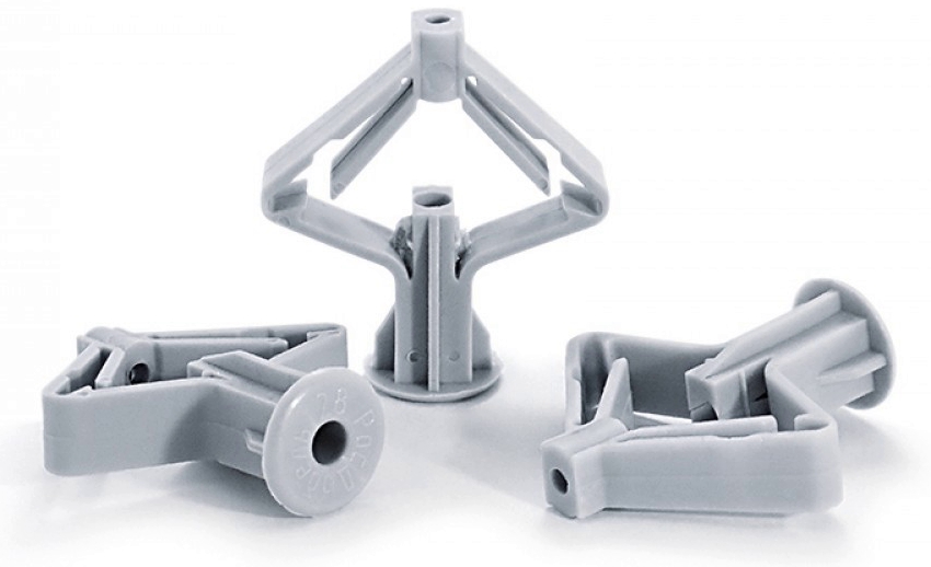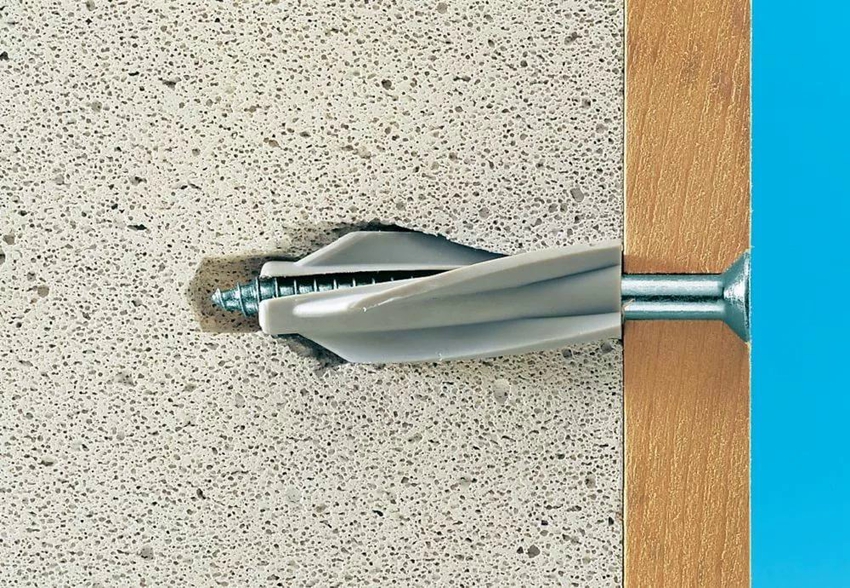 Drywall dowels are used for mounting them in porous concrete and sheets of gypsum fiber and drywall. They can be made of plastic or metal. The last option is called molly dowel. Before hammering in a dowel of this type, it is not necessary to prepare the hole first, since its tip looks like a sharpened drill.