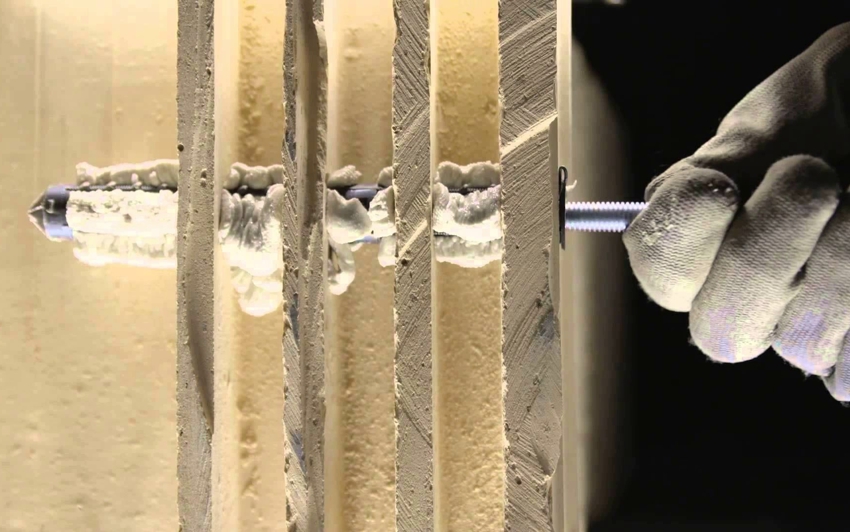 An important point is the type of surface. To deepen the dowel in a solid base, spacers are used. For hollow, layered or hollow-core walls, anchor dowels are used.