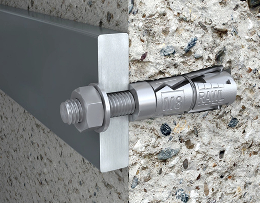 For complex outdoor work, a construction expansion dowel with a stopper flange is used, which eliminates the possibility of fasteners falling into the hole.
