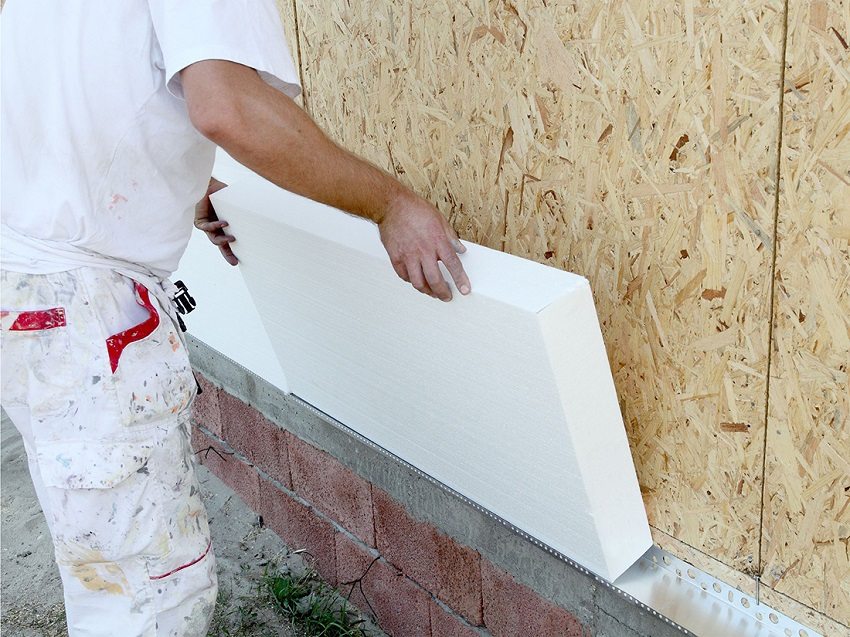 How to insulate a house from foam blocks outside with foam plastic for subsequent finishing with decorative plaster? Styrofoam or polystyrene sheets are attached to the wall using a special adhesive. In order to glue the first row of boards evenly, it is recommended to fix the finishing strip along the lower edge of the wall. After applying the glue, the sheets are pressed against the wall with little force. You can additionally fix the sheets using dowels-fungi in the center and at the corners of the sheet. Using a level and plumb lines, the plane of the applied foam layer is controlled.