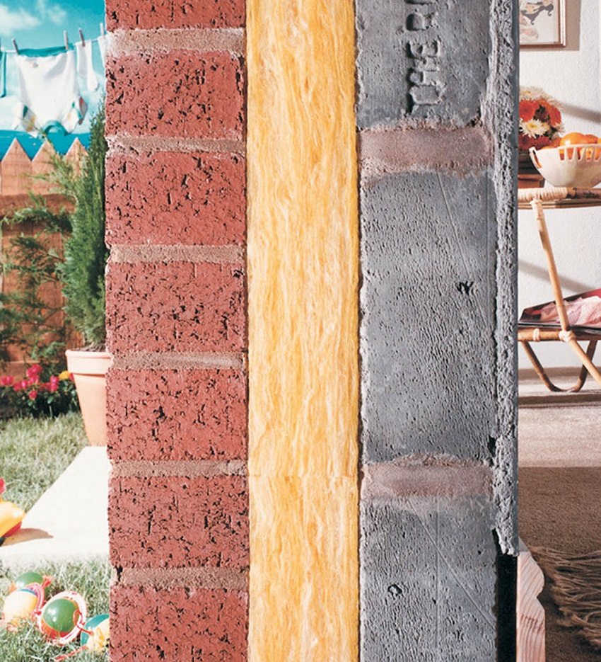 - arrange walls from three non-ventilated layers. The insulation is fixed with a solution. Then a small airspace is left and an outer wall one brick thick is erected;