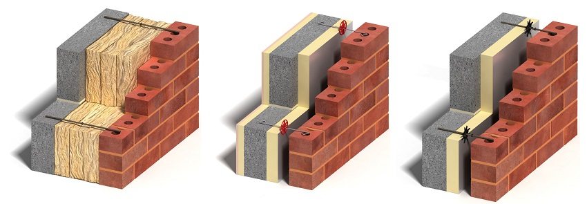 A three-layer non-ventilated wall is formed by the walls of the house from the outside, insulation and facade decoration, laid out taking into account the air gap. This method is used for installation with decoration for the walls of the house outside under a brick. Heaters of various types are used with this option, including thermal insulation materials for blown installation.