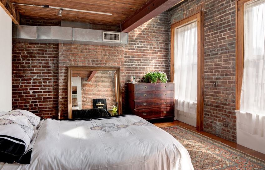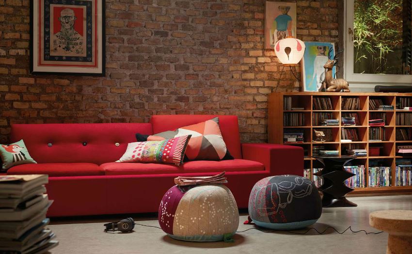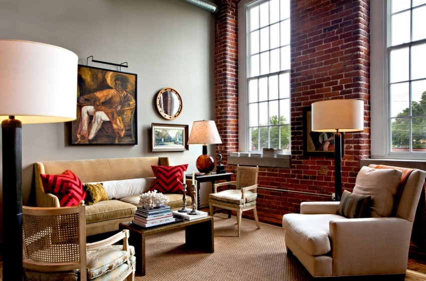 Note! You should carefully select furniture for a room with a red brick wall. Some furnishings may fade or simply get lost against its background, so it is advisable to avoid simple shapes and shades that are close in tone.