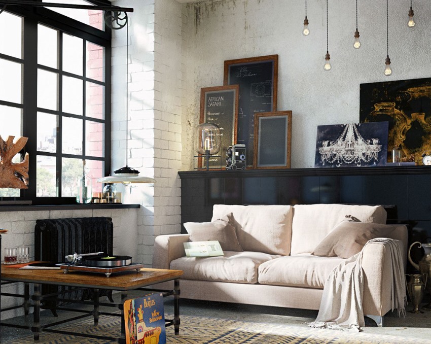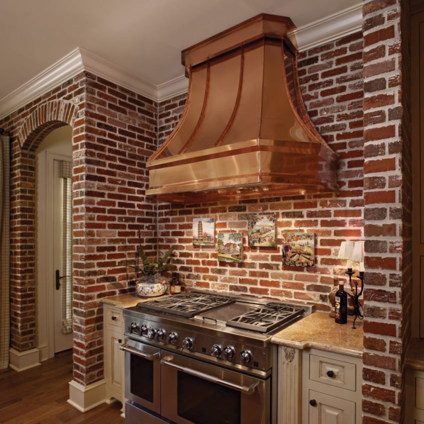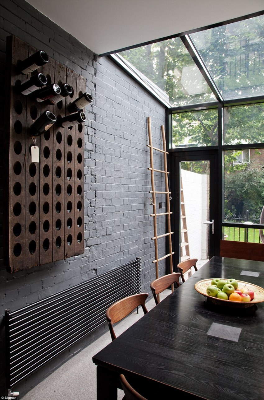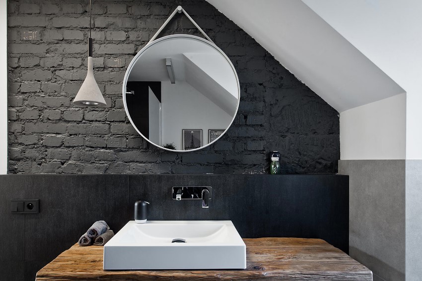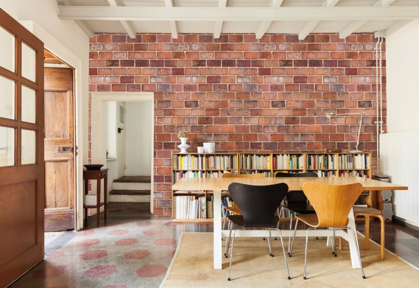The combination of exposed brickwork with a smooth wall surface creates an interesting decorative effect