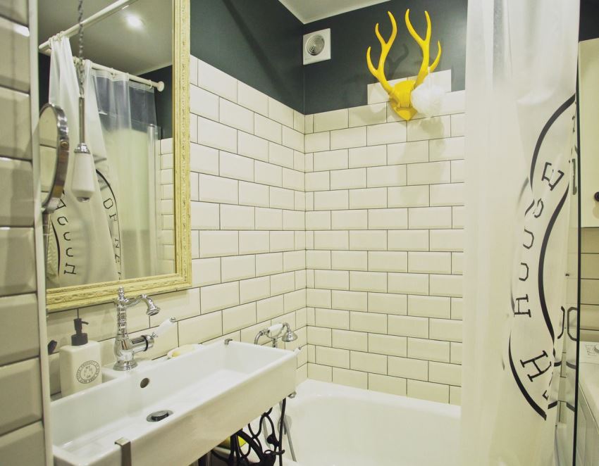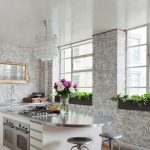 Brick tiles will be an excellent finishing material. Its second name is “brick veneer”. Unlike the previous version, this tile is lighter and thinner. Most often you can see in the photo white brick walls in the kitchen or in the bathroom, finished with this material, although there are other colors.