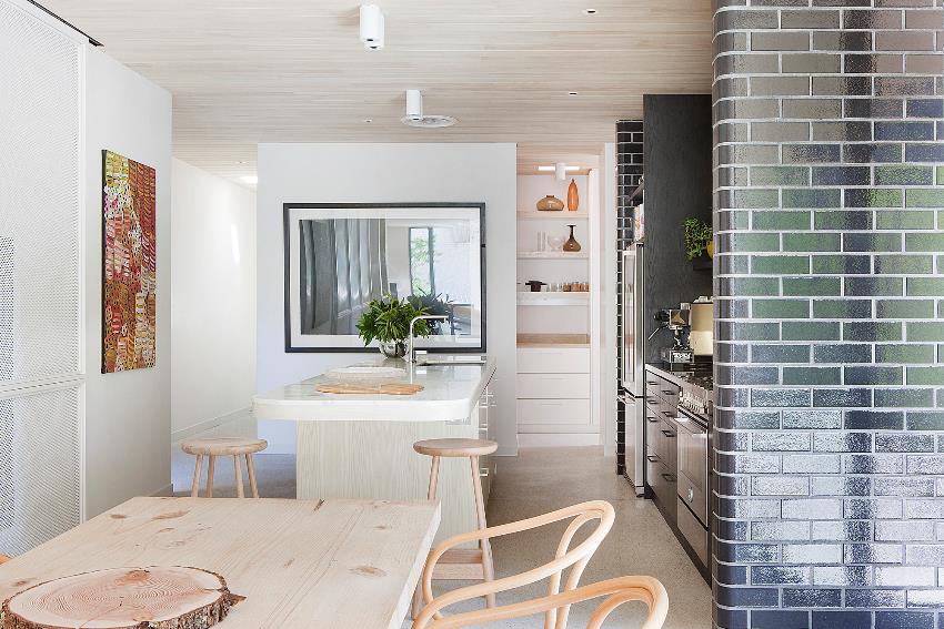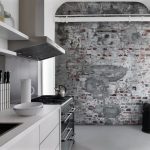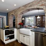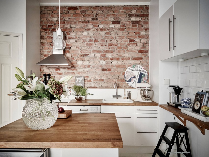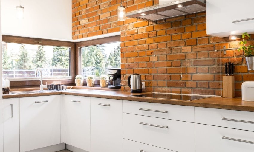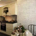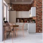Brick in the interior of the kitchen will originally emphasize the appearance and design of the room