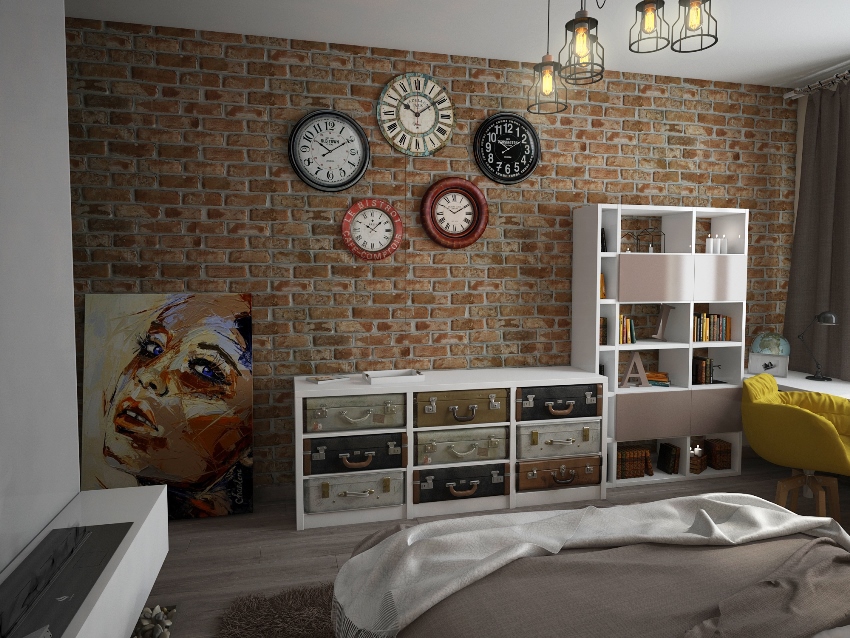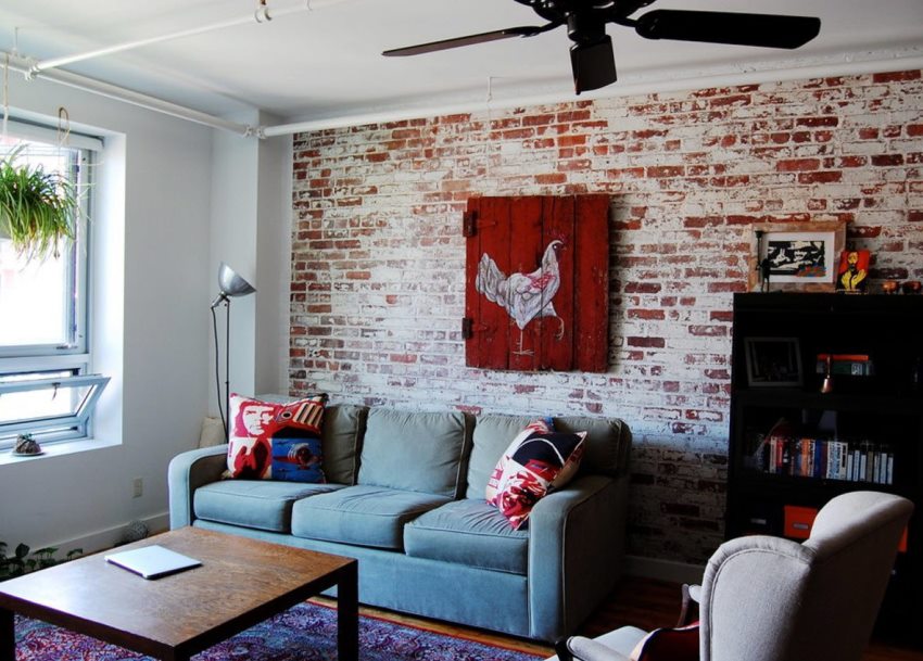 The standard shade of brick walls is red-brown. But this does not mean that the interior of the room can be limited only by this color. When choosing a design, one should take into account the style and purpose of the room.
