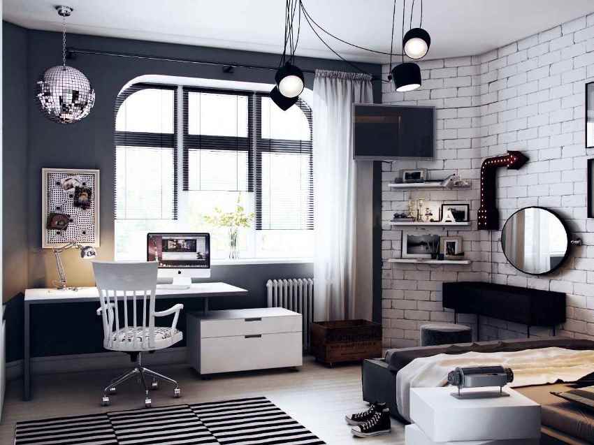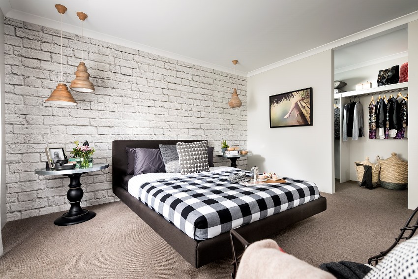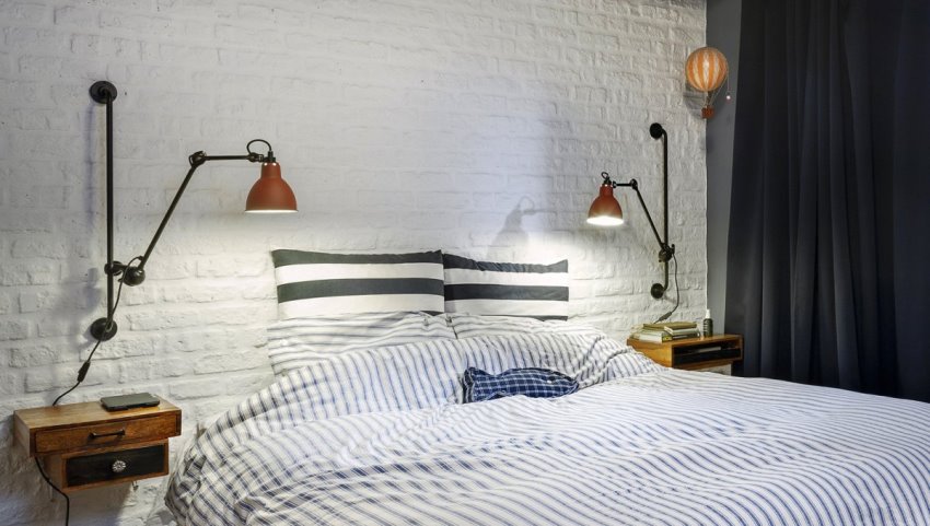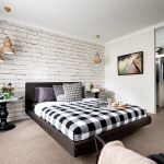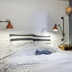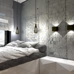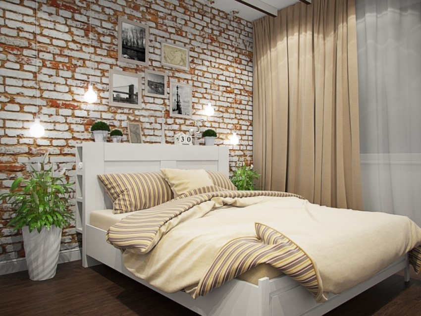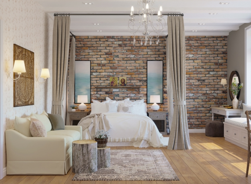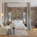 Brick decoration will be appropriate in the bedroom. White masonry will emphasize the modern style of the rest room, while giving the room charm and lightness. A brick wall in the interior of a two-level apartment or studio will look especially impressive. This element can be designed as an arch, which will be installed instead of the entrance door to the recreation room. Brick walls are suitable for Provence, Loft, Country, Classic and Scandinavian bedrooms.