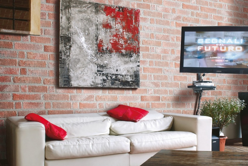 Residents of city apartments can create an imitation of a brick wall using wallpaper. This method does not require significant alterations. The material quite realistically conveys the features of the texture. The wallpaper imitates all scuffs, cracks and other relief features of natural bricks. In this case, the buyer can choose the appropriate color and design in the store, or paint the wallpaper himself.