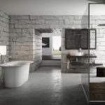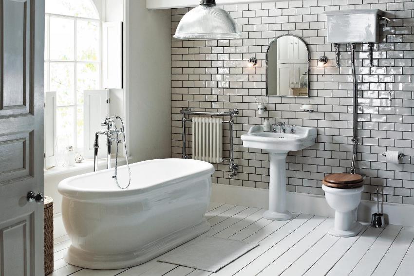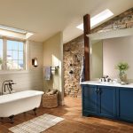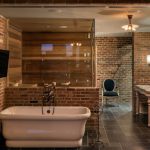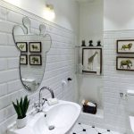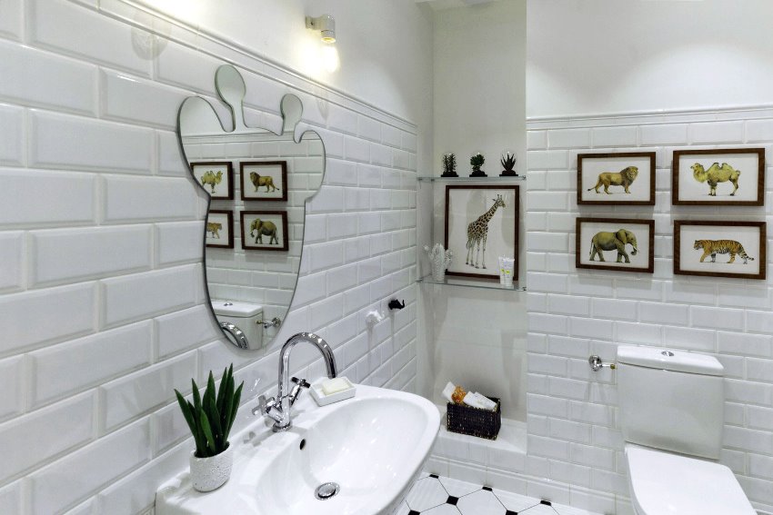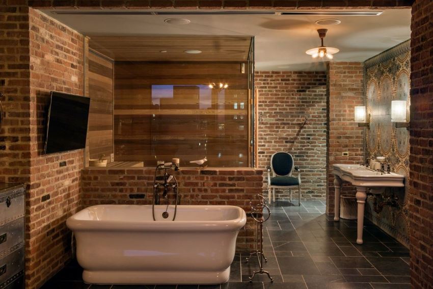 Moisture-resistant brick is successfully used for wall decoration in the bathroom. It fits perfectly into the interior and withstands the operational conditions of the room. The brickwork can be real or imitation. The use of glass blocks is allowed. They are durable, therefore they are suitable not only for wall decoration, but also for floors. This material allows you to bring heating and even install a spectacular backlight.