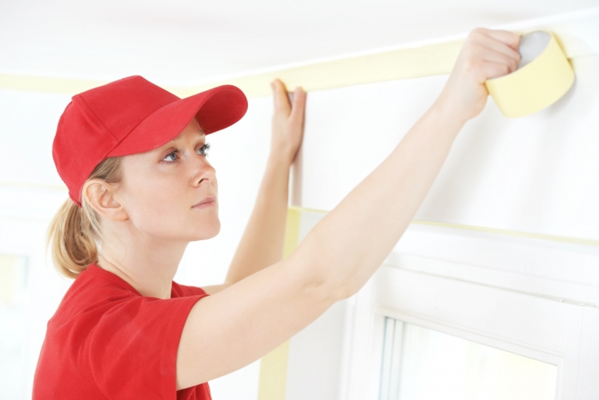 Before starting work, you need to remove the skirting boards. If this is not possible, the elements can be closed with masking tape. Platbands and window sills overlap in the same way. Scotch tape is also used for decorative purposes in order to demarcate the surface or prevent it from entering the ceiling.