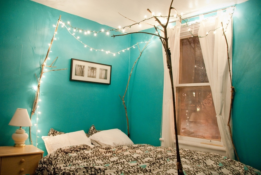 In the design of the nursery, fantasy is welcome. If you intend to apply a large and complex image, it is recommended to paint the remaining walls of the room in a calm, solid color. You can make a wood-like shape that is molded on the wall using paint and papier-mâché inserts. An interesting option looks like using lights in the form of garlands or bulbs, which will add accents and give a fabulous mood to the picture. As objects of the image, cartoon characters, animals, the starry sky, plants, elements of a marine theme or colorful ornaments are suitable.
