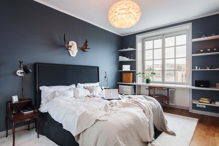 However, you should not cling to the framework of the classic performance. Dark areas can end in the middle of a wall or even reach almost to the ceiling. The result is very daring, but care must be taken when working with this technique. The presence of dark paint on the ceiling can make it look lower.To avoid this, it is recommended to leave a light strip at the very top.