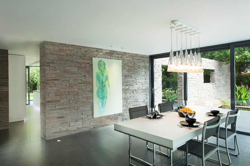 Plates, thanks to the tongue-and-groove principle, can be installed without experience and special knowledge in this area. Hollow core products are suitable if it is not recommended to overload the floor in the room. Due to the internal emptiness, they have less weight. Also, due to the peculiarities of the structure, they provide a higher level of noise insulation of interior partitions. For maximum styling effect, soundproofing tape can be used. Despite the fact that the material is very durable, it is easy to saw and chase.