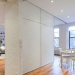 The interior partitions of the compartment are installed together with the parking area, in which the doors will be located at the moment the opening is opened.It is possible to implement such structures without using a parking zone, which allows you to expand the opening. Suspended installation systems are no less relevant. Their peculiarity lies in the fact that they move only along the upper rail, and at the bottom they are fastened with bolts.