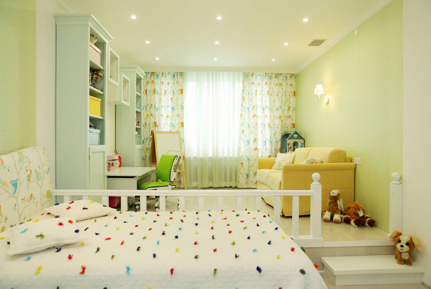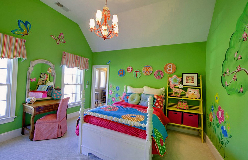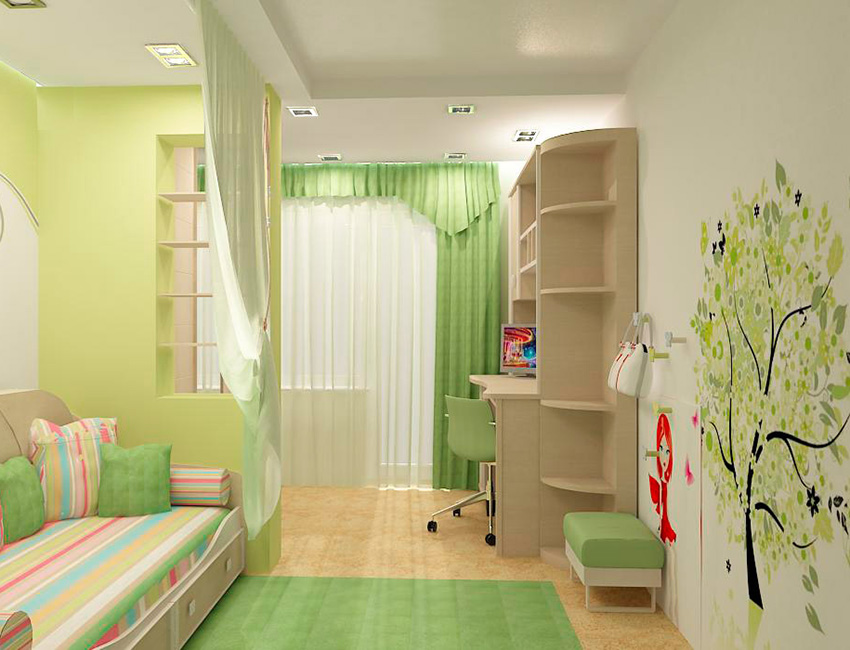 Often, green is used to decorate the interior of a children's room, and in a wide variety of shades.