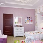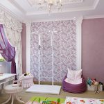 If you use lilac wallpaper in combination with beige and milky tones, you can get an emotionally balanced interior. Moreover, auxiliary tones do not have to be present in the decoration itself. They can be part of textiles or furniture. Thanks to this contrast, a positive mood will form in the nursery.