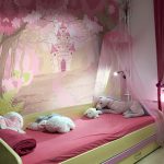 Wallpaper decorated with images of castles and fairy kingdoms looks very impressive in the interior of the nursery. If this design is complemented by original pieces of furniture made in the same style, you can create a real princess room.
