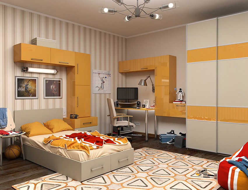 From the age of 13, the child undergoes changes associated with transitional age. During this period, you should think about creating a more "adult" interior in the nursery. However, it is very important to stay within the permitted color scheme. To give the interior a more austere appearance, you can use plain canvases. The design of the room can be classic or modern (modern style).