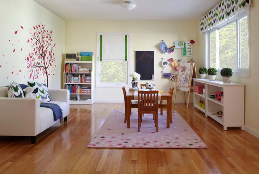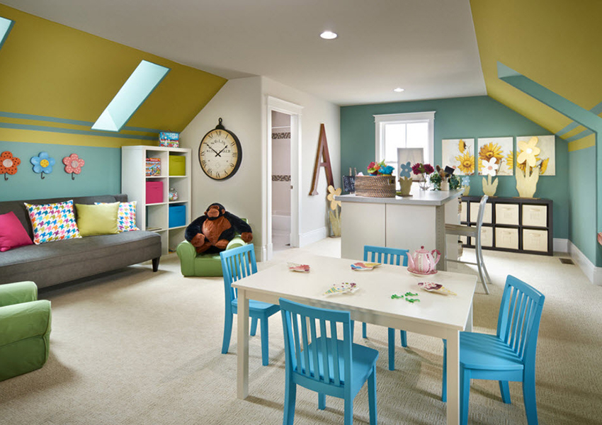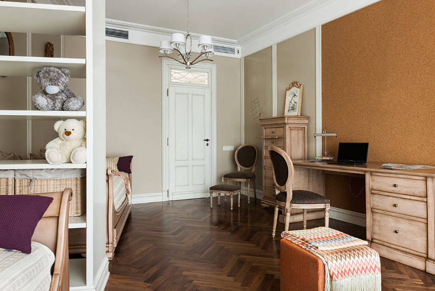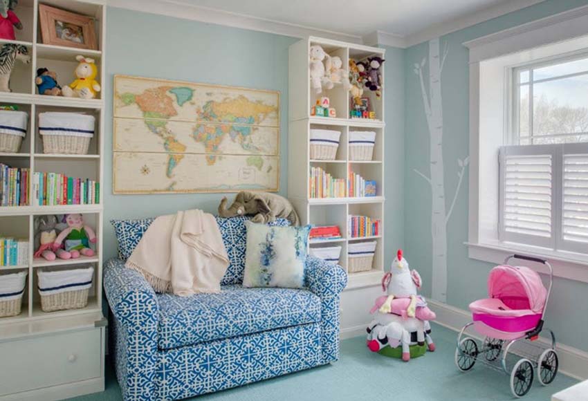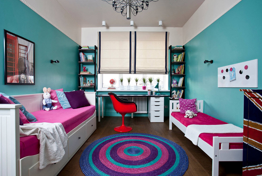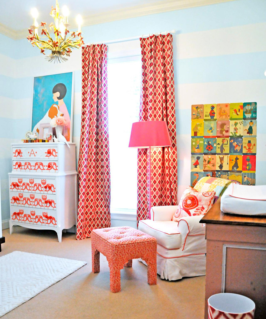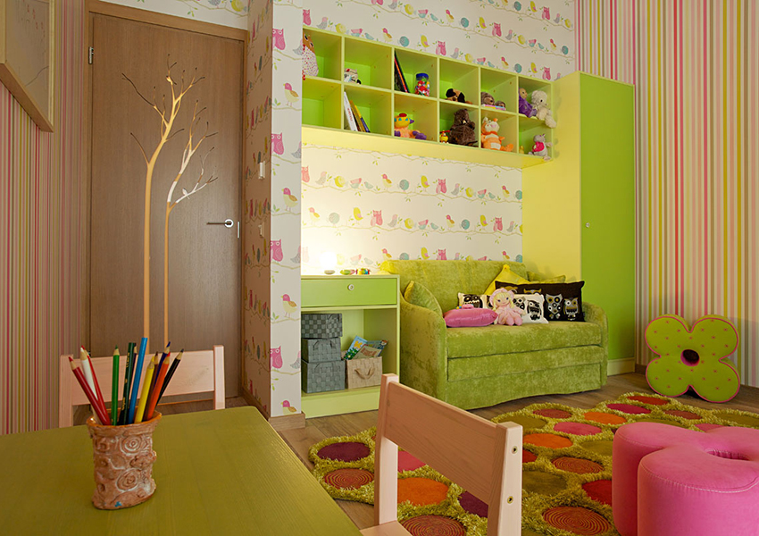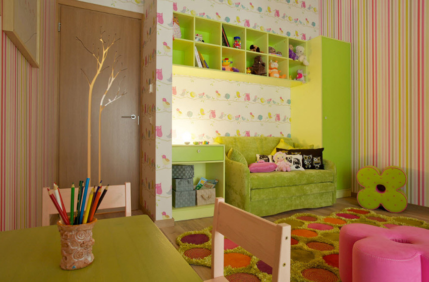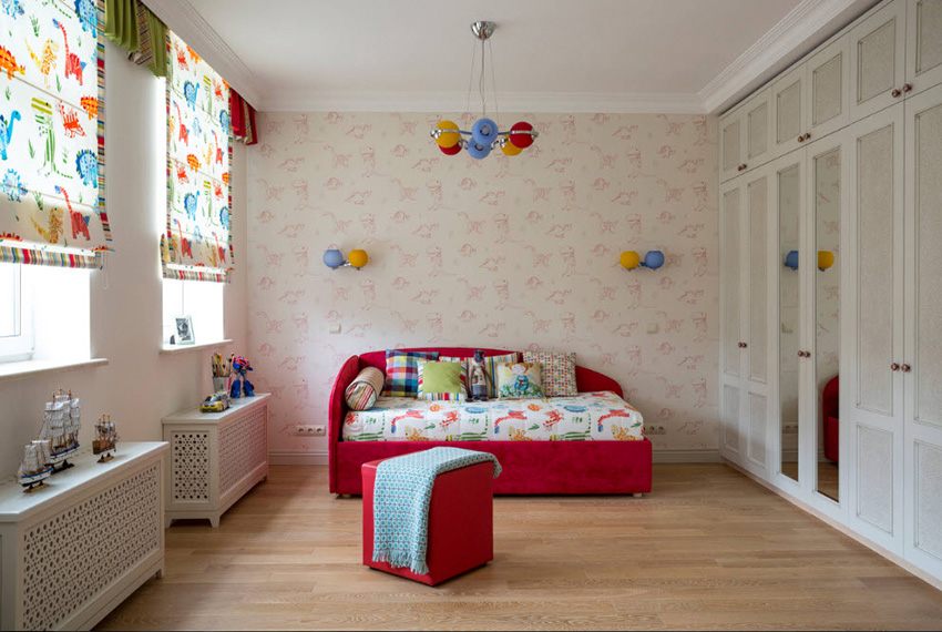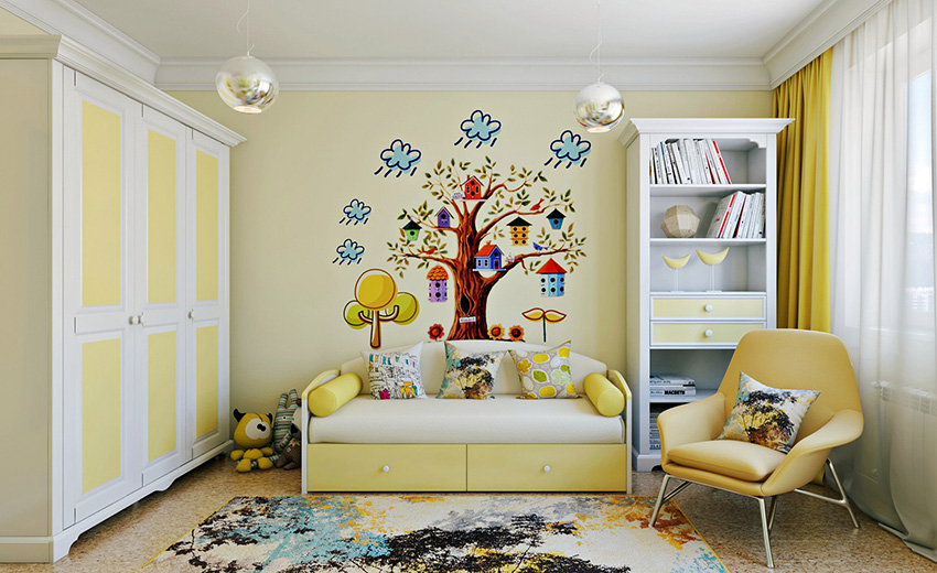 Colorists do not recommend getting carried away with too dark (black, dark blue, dark gray) and too bright (scarlet, light green) colors in the interior of a children's room