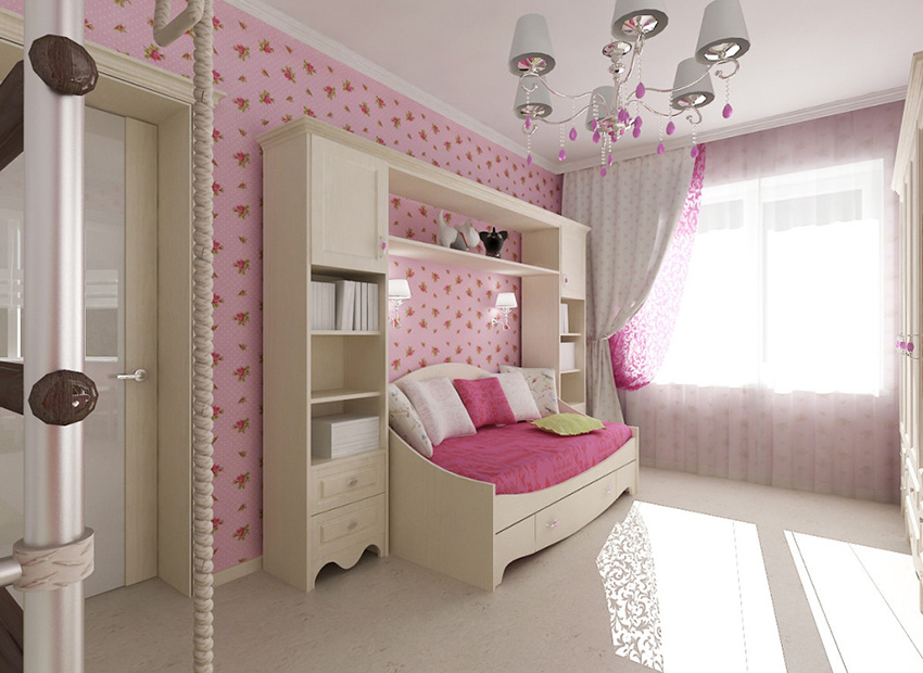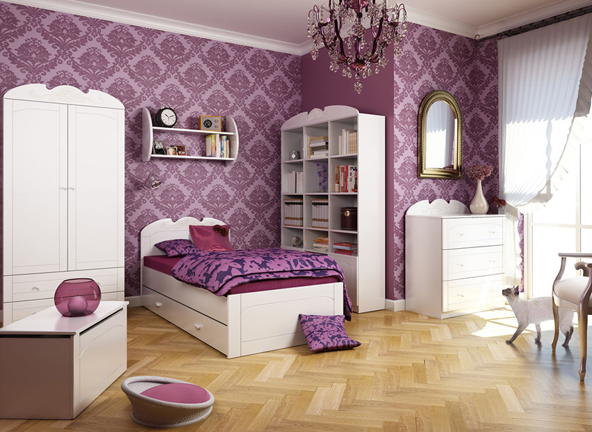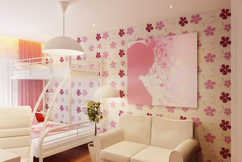 The interior of the girl's bedroom must necessarily include interesting design solutions, original patterns and elements that emphasize the individuality of the room and its owner. Wallpaper, which is present in a huge variety on store shelves, will help to solve this problem.