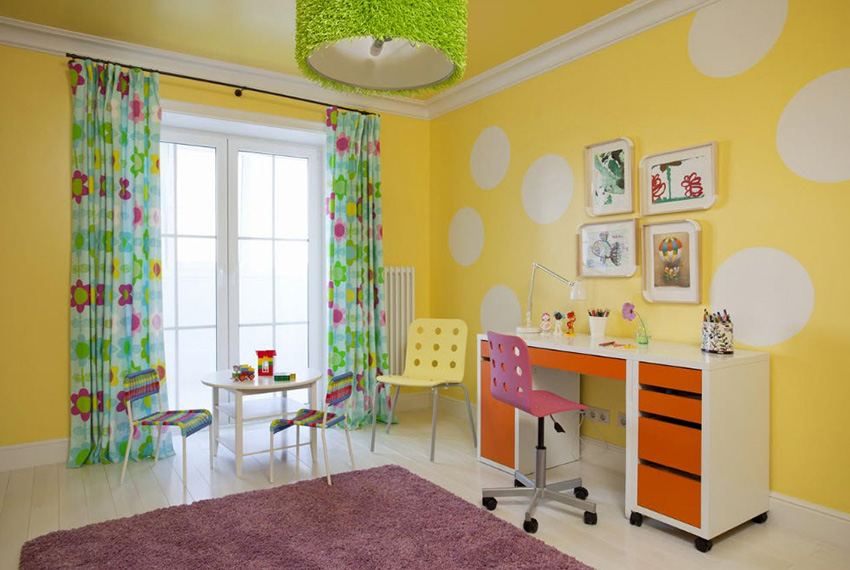 Psychologists say that yellow wallpaper has a positive effect on the mental abilities of a child. This shade stimulates mental activity, which is an undoubted advantage for an organism that develops and grows.