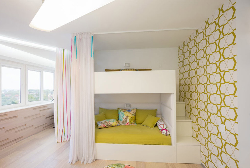 In a room for a girl of 10 years old, wallpapers are selected more carefully. Finishing not only should suit the personal preferences of the child, but also create an atmosphere in the room that promotes concentration. At this age, school assignments become more difficult to understand, so the children's room should set the girl up not for games, but for the educational process. To create the desired mood, you can use a yellow wallpaper with a geometric or floral pattern.