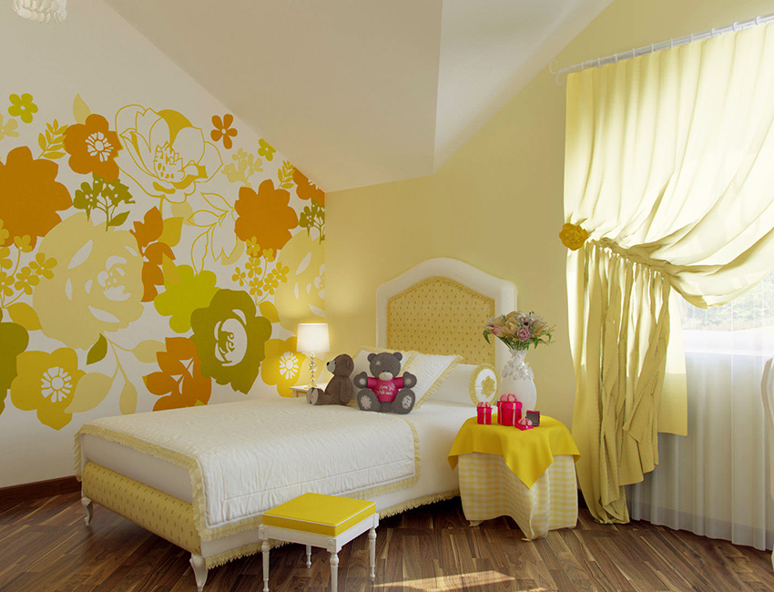 Wallpaper made in yellow colors is considered universal, and not only for girls of all ages, but also for children of both sexes. Of course, only pastel colors are allowed in the children's bedroom. It is possible to use deep and rich yellow shades, but they should be muted.