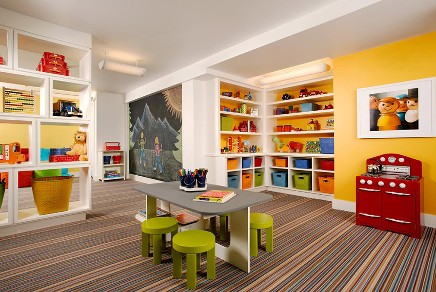 - divide the space of the room into a playroom and a recreation area;