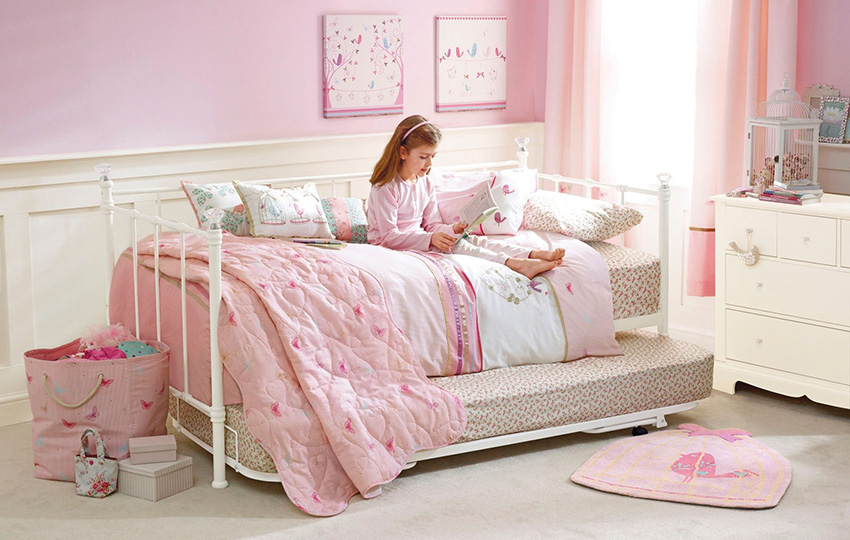 Besides the fact that pink is considered "girly", there are many more reasons why it should be used in a little lady's bedroom. Experts have proven that this shade has a special psychological effect on the consciousness of a child.