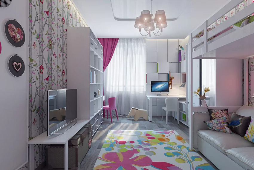 If a teenage girl is restless in class, you can decorate the walls in gray, blue or light blue. However, this requirement only applies to the training area. Don't make the environment too cold. In this case, the option of combining several types of wallpaper is suitable.