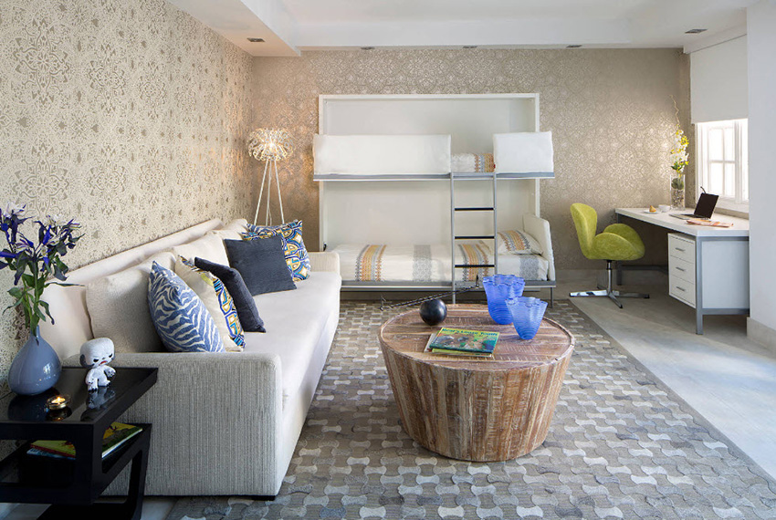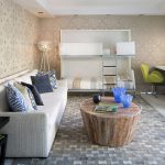 By combining wallpaper with different decor, you can effectively zone the space of the room without using partitions and screens.