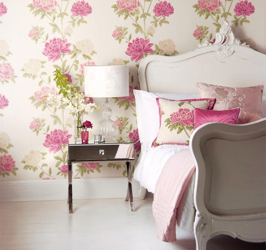 Fashion has returned floral motives of decoration to the interiors of the bedrooms. The natural theme, with the right palette selection, is even suitable for creating modern designs. Pastel shades remain the classic design option for the rest room. The use of bright colors as accents is allowed. Saturated color wallpapers are most often glued to the wall behind the head of the bed, which allows you to highlight the central surface in the room. For registration bedrooms muted tones can also be used. However, their application is not complete without some nuances.