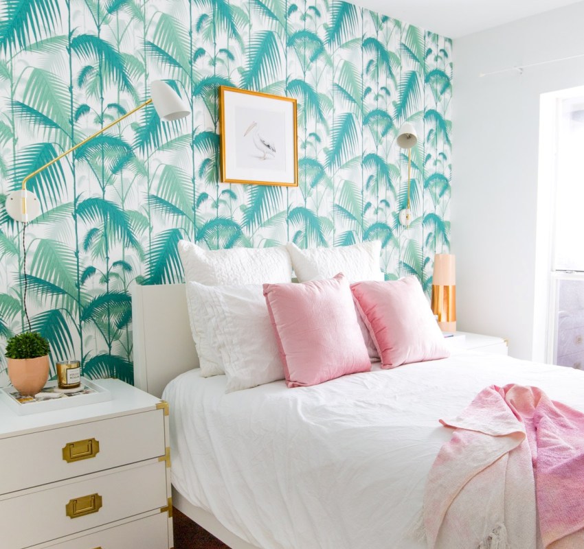 An important role in the interior of the bedroom is assigned to shades. White, beige, yellow, pale blue, will look good as a background. pink wallpaper and other tones of a pastel palette. They go well with almost all colors. It is much more difficult to achieve harmony in an interior with bright accents. The easiest way to do this is if the room will use textiles and accessories that repeat the color of the wall decoration or the pattern on the wallpaper.