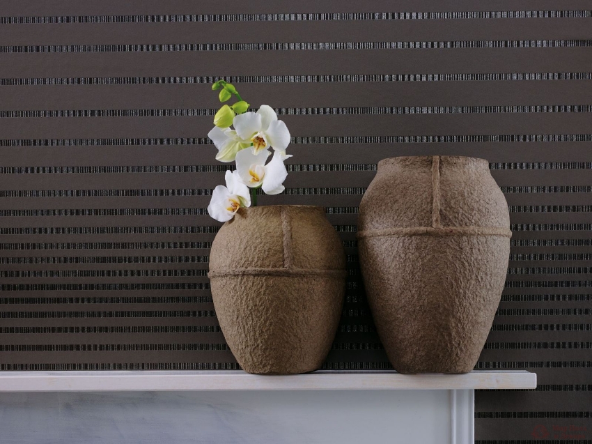Non-woven wallpaper has the same base as vinyl, however, they differ in the upper decorative layer, which is a homogeneous coating consisting of 100% dense fabric. This material is sustainable and practical, although it does not have as much design as vinyl products.