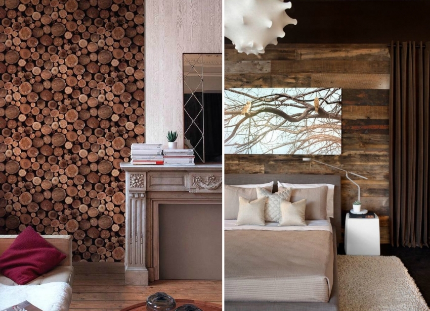The most accurate transfer of texture and the uniqueness of the wood pattern is conveyed by photo wallpapers, especially those that create a three-dimensional 3D effect.