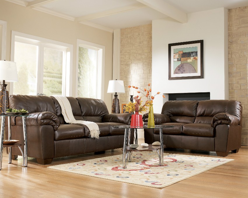 The most organic combination is obtained by decorating the living room with a fake fireplace or wall protrusions in the form of columns with brick walls. At the same time, it is not recommended to decorate with wallpaper around a real fireplace, since this material is unreliable in terms of fire safety and quickly becomes unusable due to the negative effects of high temperatures.