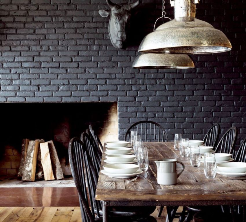 - The dark brick print should be complemented by the most common light wallpaper.