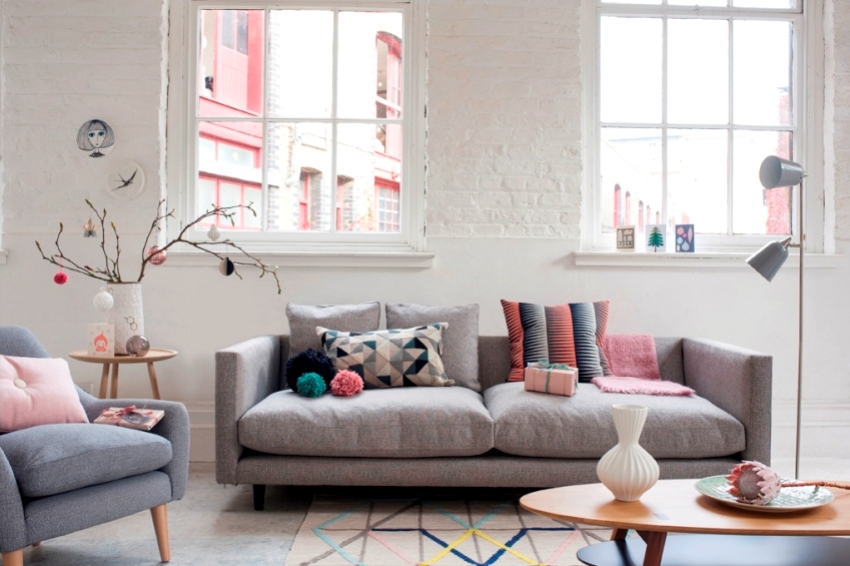 The Scandinavian style, like the Swedish one, is characterized by snow-white surfaces, so white wallpaper with a pronounced texture is suitable as a finish. Recreation areas are designed in a similar way. In the bedroom, the wall behind the headboard is finished with "brick" wallpaper, and in the living room - the surface behind the sofa. The design will harmoniously complement the floor in white; it is allowed to use a coating in the form of a gray laminate with a slight play of shades.