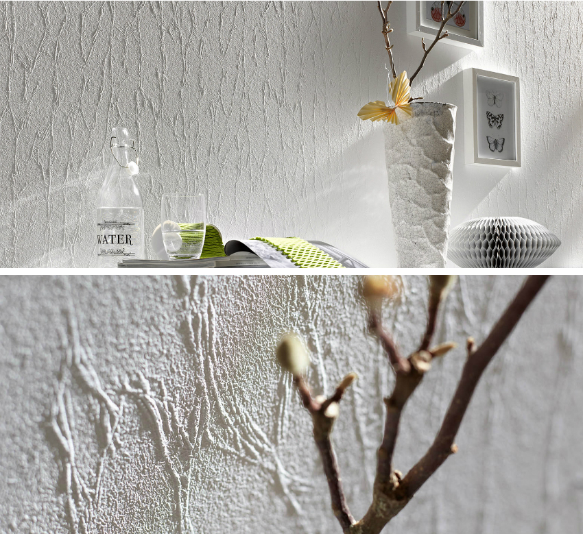 There are hundreds of samples on sale with a variety of textures. There are also paper-based coarse fiber materials. To make their relief structure, sawdust is used, located on the canvas in layers in a chaotic manner. This type of finish is suitable for use as paintable wallpaper on ceilings and walls. In addition, it is considered one of the safest and most environmentally friendly.