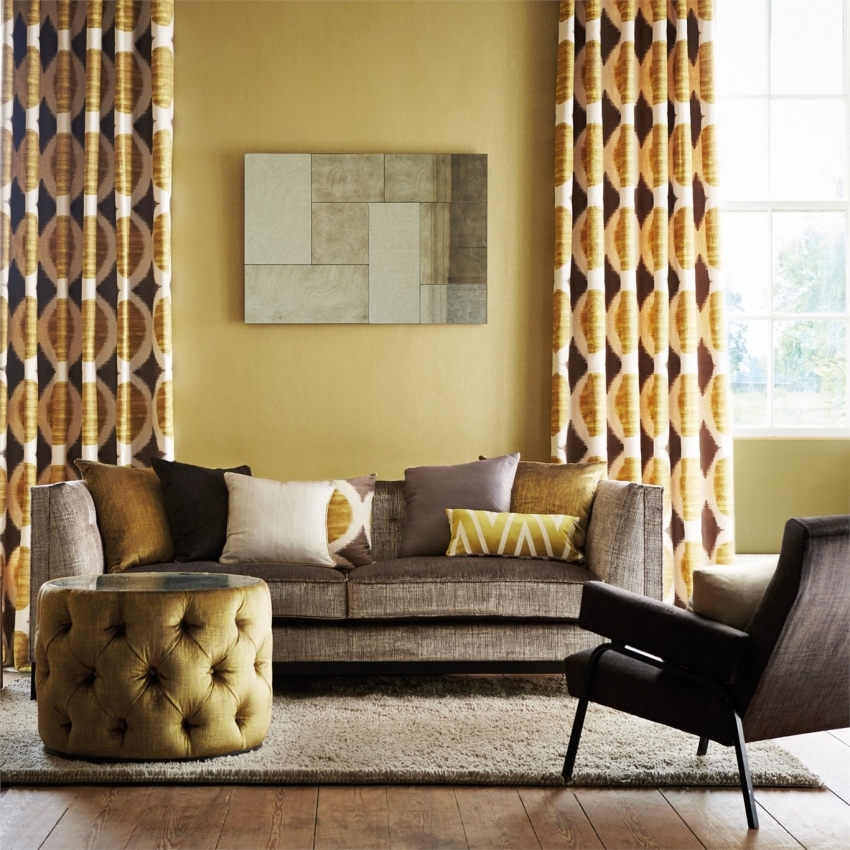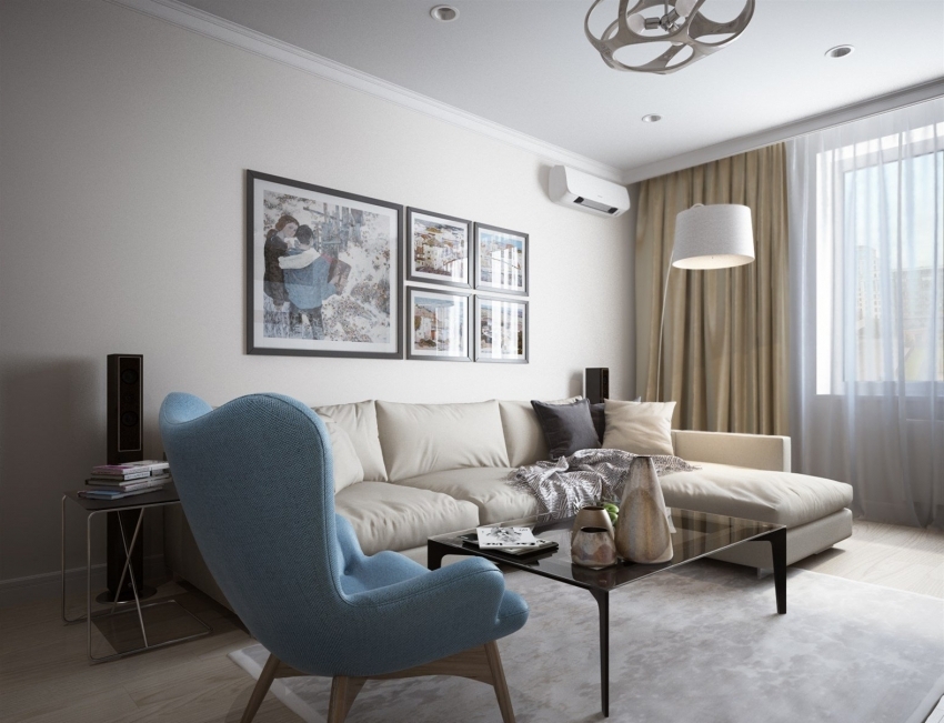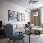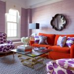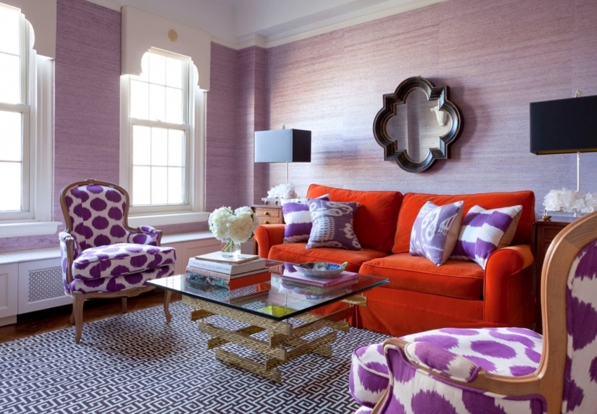 In the setting living room coverings decorated with a geometric or chaotic pattern will look beneficial. It is allowed to use wallpaper with a 3D effect that realistically simulates volumetric decorative elements. Chaotic patterns are appropriate in small rooms; materials with a large pattern are suitable for spacious living rooms.