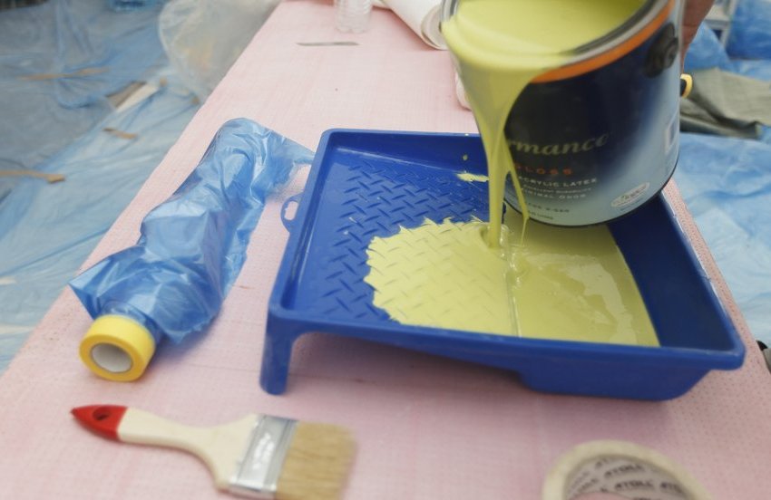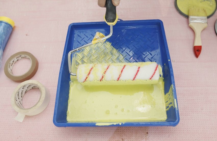 It is recommended to apply the coloring composition in two layers to ensure a high-quality result. When working with cheap coatings, this procedure may need to be performed three times. As a tool for applying dye, a roller with a fur coat made of sheepskin or velor with a medium pile length is ideal. You will also need a brush for cornering and hard-to-reach areas.