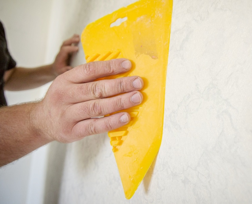 After gluing the wallpaper to the wall, it is necessary to get rid of air bubbles with a special spatula